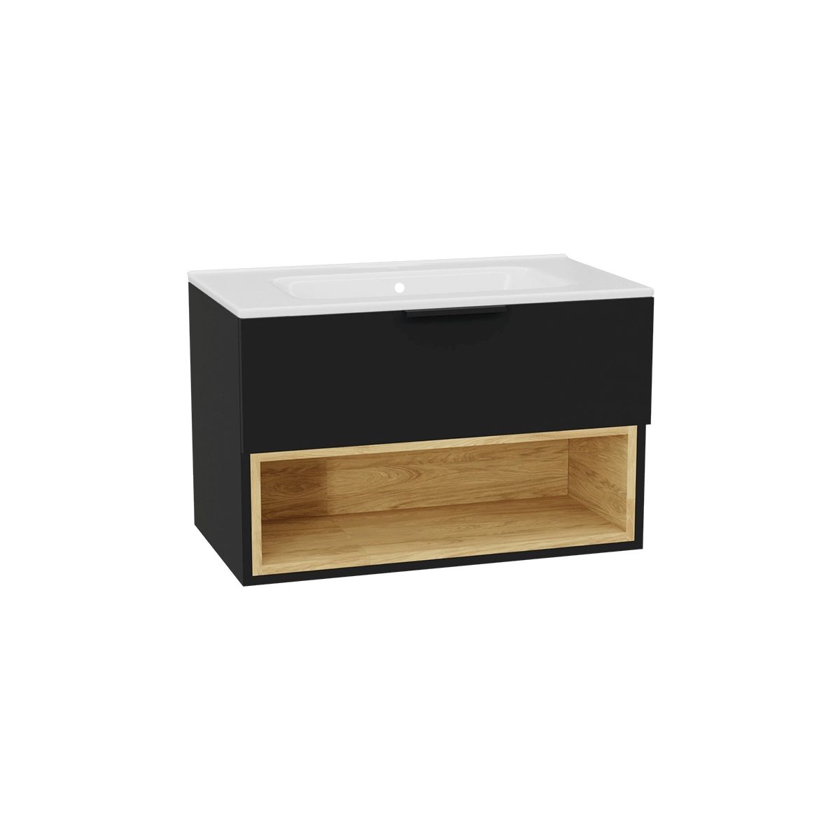 Tuto 2.0 Schrankkorpus 80 cm, 1 Schublade, schwarz matt/Eiche.