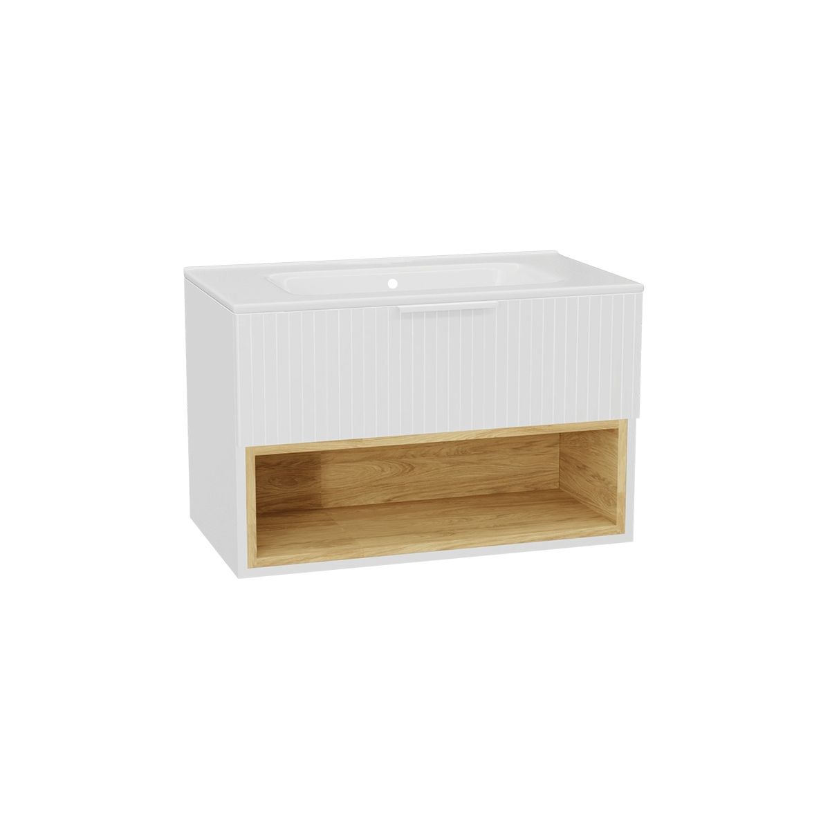 Tuto 2.0 Korpus 80 cm, 1 Schublade, weiß glänzend/Eiche.