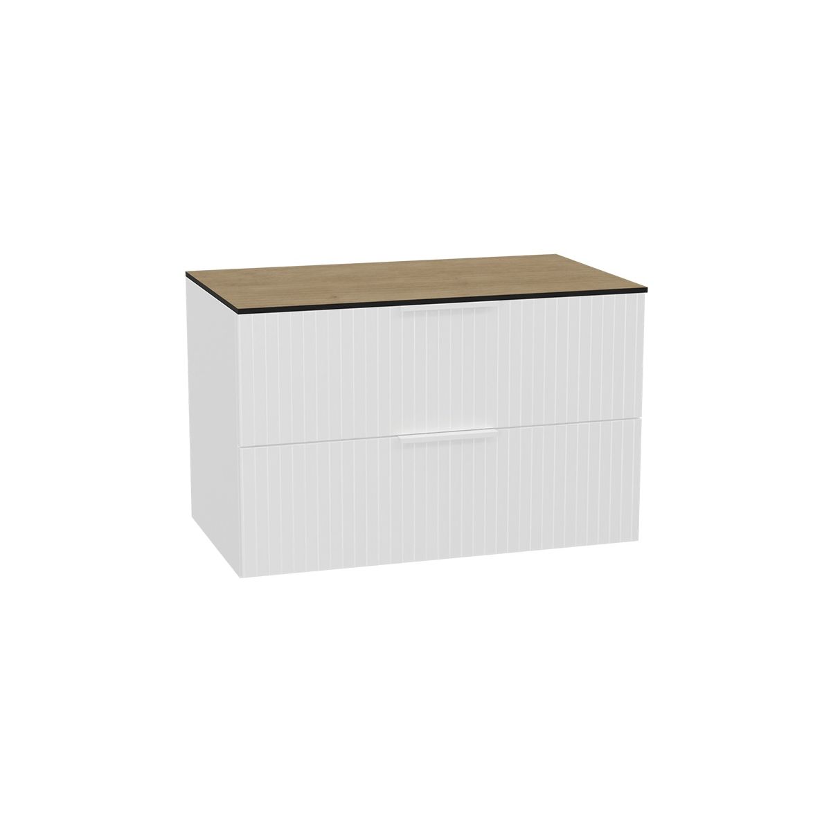 Tuto 2.0 Korpus 80 cm, 2 Schubladen ohne Front, ohne Platte, weiß glänzend/Eiche.