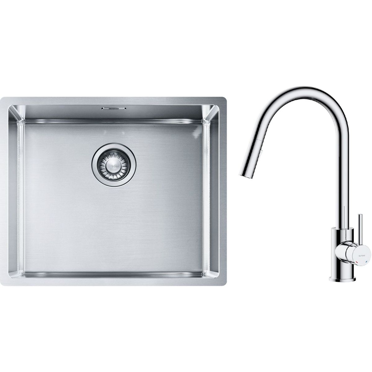 1. Franke Box BXX 210/110-50 Spülbecken aus Stahl 54 x 45 cm, gebürsteter Stahl (127.0453.656)