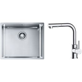 1. Franke Box BXX 210/110-50 Spülbecken aus Stahl 54 x 45 cm, gebürsteter Stahl (127.0453.656)