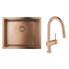 1. Grohe K700U Spülbecken aus Stahl 55 x 45 cm, gebürstet, Warm Sunset 31574DL1