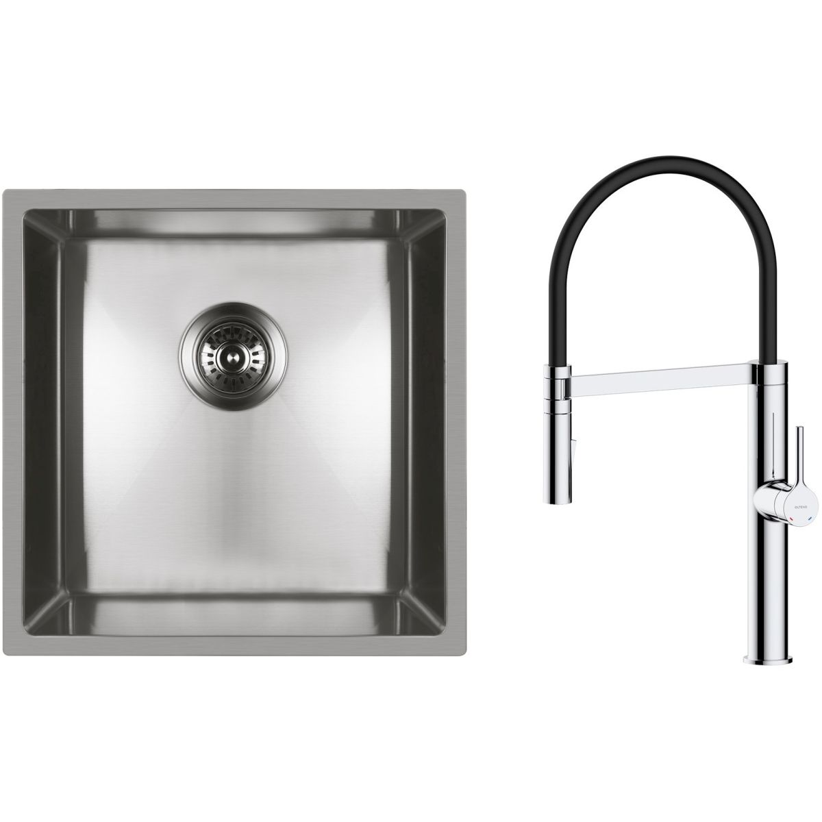 - im Lieferumfang enthalten: Siphon mit Anschlussmöglichkeit für Geschirrspüler, manuell mit Abfallkorb. Schablone zum Ausschneiden der Öffnung in der Arbeitsplatte, Montageset für die Unterbau-Montage