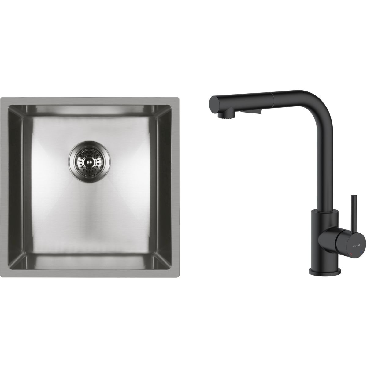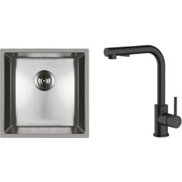 - im Lieferumfang enthalten: Siphon mit Anschlussmöglichkeit für Geschirrspüler, manuell mit Abfallkorb. Schablone zum Ausschneiden der Öffnung in der Arbeitsplatte, Montageset für die Unterbau-Montage