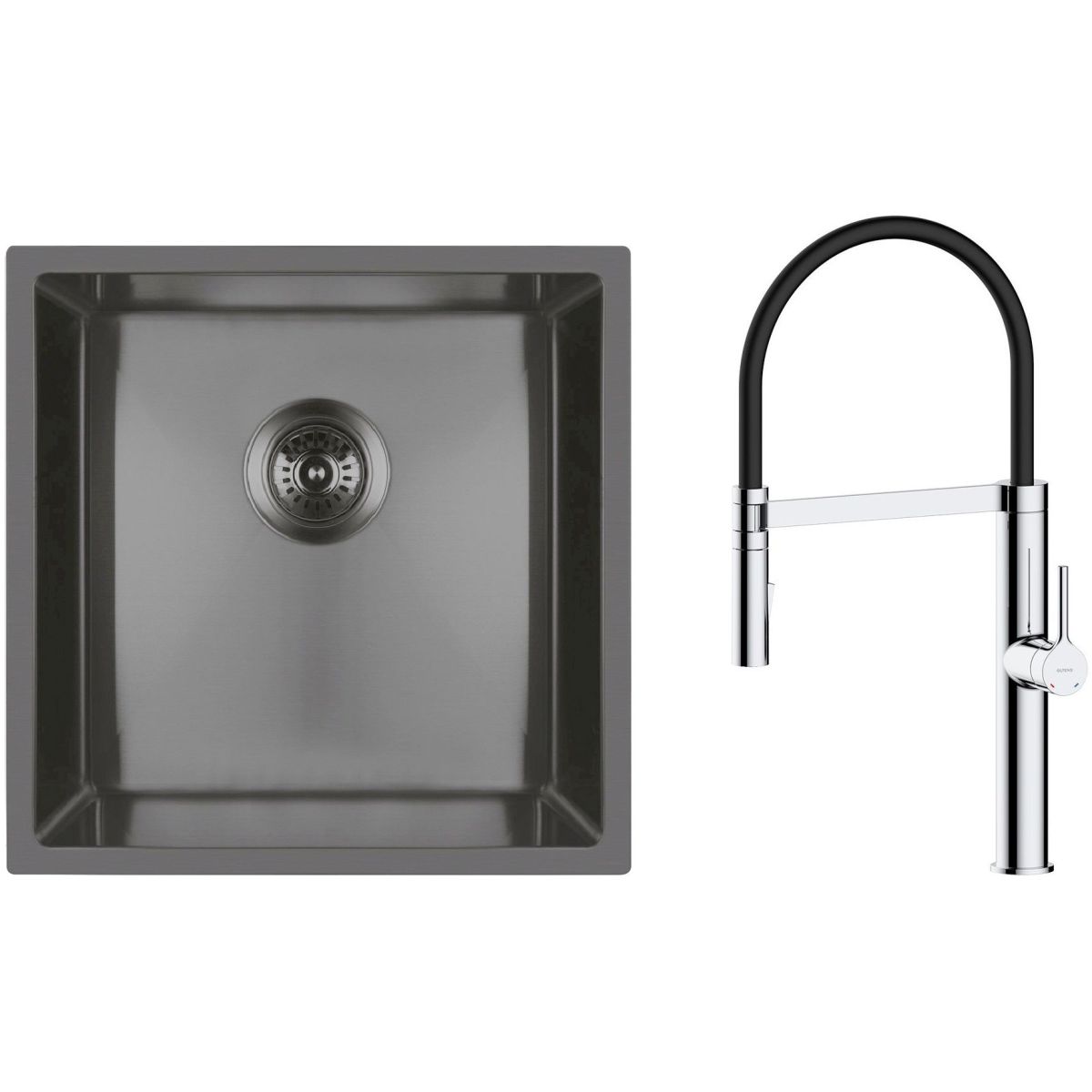 - im Lieferumfang enthalten: Siphon mit Anschlussmöglichkeit für Geschirrspüler, manuell mit Abfallkorb. Schablone zum Ausschneiden der Öffnung in der Arbeitsplatte, Montageset für die Unterbau-Montage