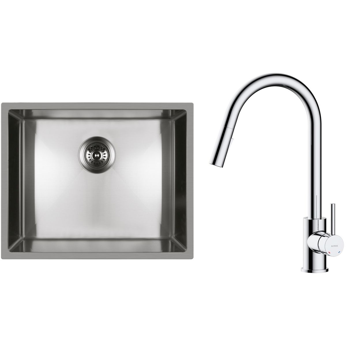 - im Lieferumfang enthalten: Siphon mit Anschlussmöglichkeit für Geschirrspüler, manuell mit Abfallkorb. Schablone zum Ausschneiden der Öffnung in der Arbeitsplatte, Montageset für die Unterbau-Montage