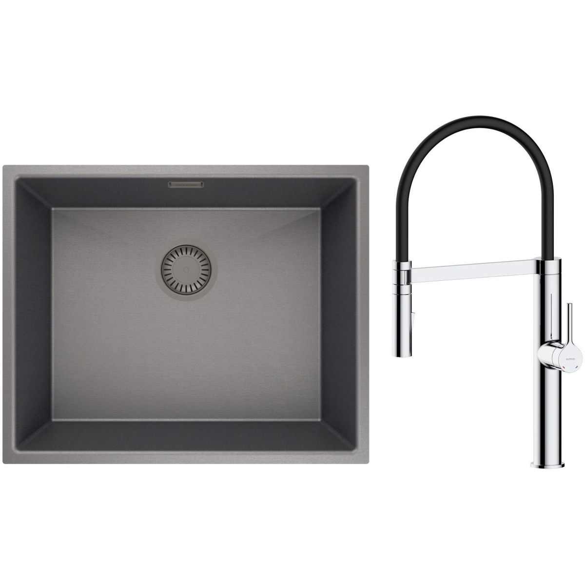 - Im Lieferumfang enthalten: Siphon mit Anschlussmöglichkeit für Geschirrspüler, manuell mit Abfallkorb. Schablone zum Ausschneiden der Öffnung in der Arbeitsplatte, Montageset für die Unterbau-Montage