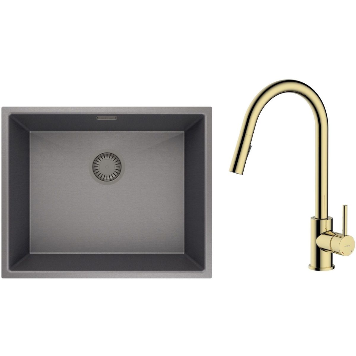 - im Lieferumfang enthalten: Siphon mit Anschlussmöglichkeit für Geschirrspüler, manuell mit Abfallkorb. Schablone zum Ausschneiden der Öffnung in der Arbeitsplatte, Montageset für die Unterbau-Montage