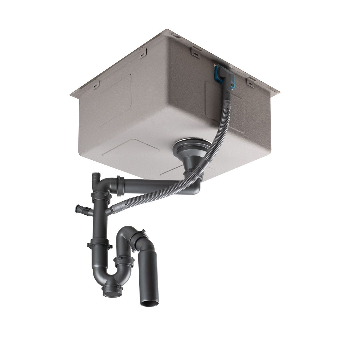 - im Lieferumfang enthalten: Siphon mit Anschlussmöglichkeit für Geschirrspüler, manuell mit Abfallkorb. Schablone zum Ausschneiden der Öffnung in der Arbeitsplatte, Montageset für die Unterbau-Montage