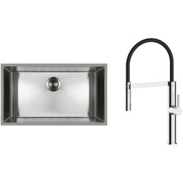 - Im Lieferumfang enthalten: Siphon mit Anschlussmöglichkeit für Geschirrspüler, manuell mit Abfallkorb. Schablone zum Ausschneiden der Öffnung in der Arbeitsplatte, Montageset für die Unterbau-Montage