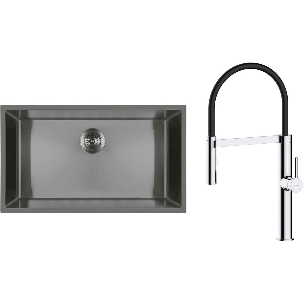 - Einbeckige Spüle aus Stahl für Schränke ab 80 cm