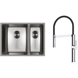 - im Lieferumfang enthalten: Siphon mit Anschlussmöglichkeit für Geschirrspüler, manuell mit Abfallkorb. Schablone zum Ausschneiden der Öffnung in der Arbeitsplatte, Montageset für die Unterbau-Montage