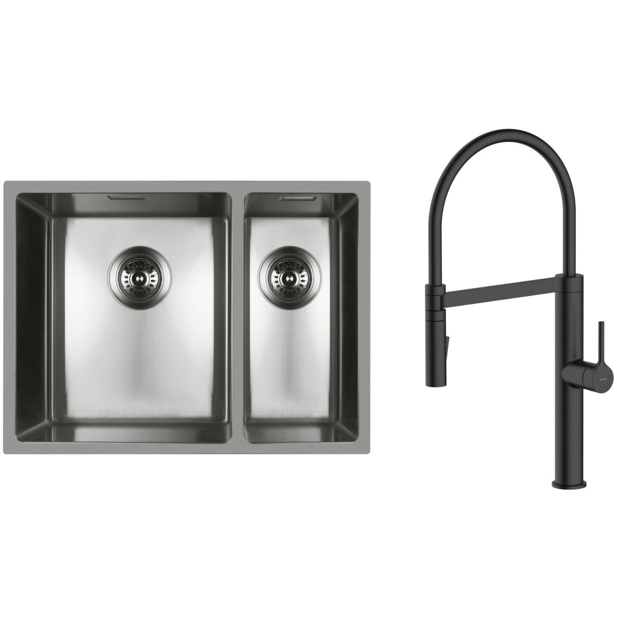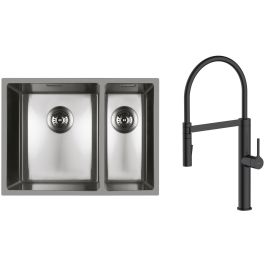 - im Lieferumfang enthalten: Siphon mit Anschlussmöglichkeit für Geschirrspüler, manuell mit Abfallkorb. Schablone zum Ausschneiden der Öffnung in der Arbeitsplatte, Montageset für die Unterbau-Montage