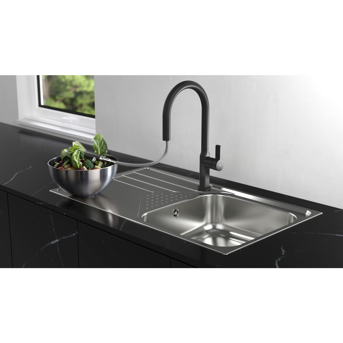- Küchenarmatur mit ausziehbarem Auslauf und variabler Strahlart