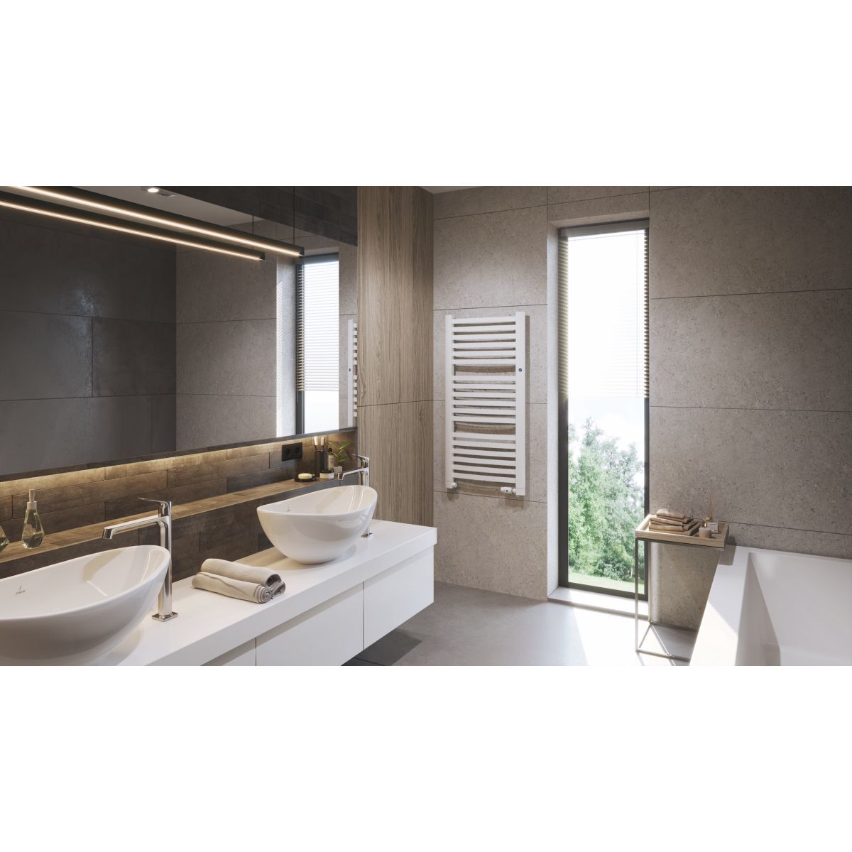 Spezielle Ventilgarnitur für RETTO-Heizkörper, geeignet für die Montage in Anlagen mit Unterversorgung. Die rechte Version ist für die Versorgung vom linken Kollektor vorgesehen (und umgekehrt). Möglichkeit der Montage eines elektrischen Heizelements im Rücklaufverteiler. Das Set ermöglicht eine präzise Temperaturregelung und einen zuverlässigen Betrieb bei hohen Temperaturen und hohem Druck.
