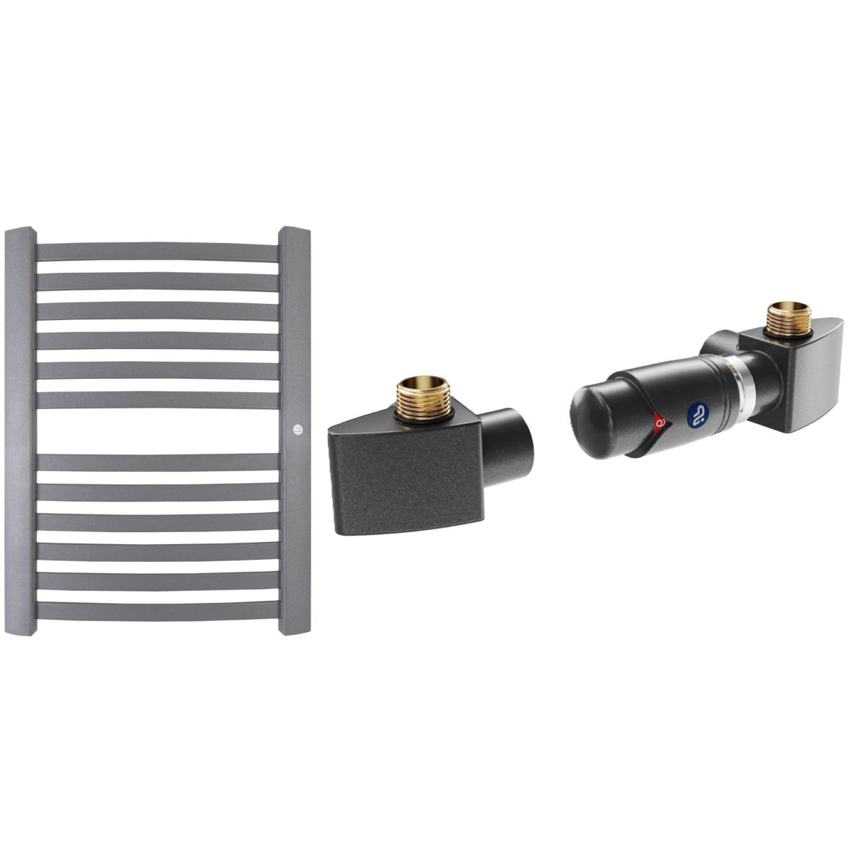 Spezielle Ventilgarnitur für RETTO-Heizkörper von Instal Projekt, geeignet für die Montage in Anlagen mit Unterversorgung. Für die Versorgung im linken Verteiler ist das rechte Ventil zu montieren, für die Versorgung im rechten Verteiler das linke Ventil. Der elektrische Heizkörper ist im Rücklaufkollektor der Anlage zu montieren. Das Set ermöglicht eine präzise Temperaturregelung und einen zuverlässigen Betrieb bei hohen Temperaturen und hohem Druck.