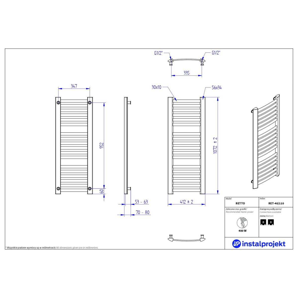 Der Badheizkörper Instal Projekt Retto RET-40/110C31 in eleganter, matter schwarzer Farbe (C31) ist eine moderne Lösung für funktionale und stilvolle Badezimmer. Seine geometrische Form mit dreieckigen Kollektoren und horizontalen Profilen ist ein Blickfang und passt hervorragend zu minimalistischen und Loft-Interieurs. Dank des unteren Anschlusses ist der Heizkörper einfach zu montieren, und seine Konstruktion ermöglicht den bequemen Einsatz eines elektrischen Heizelements.