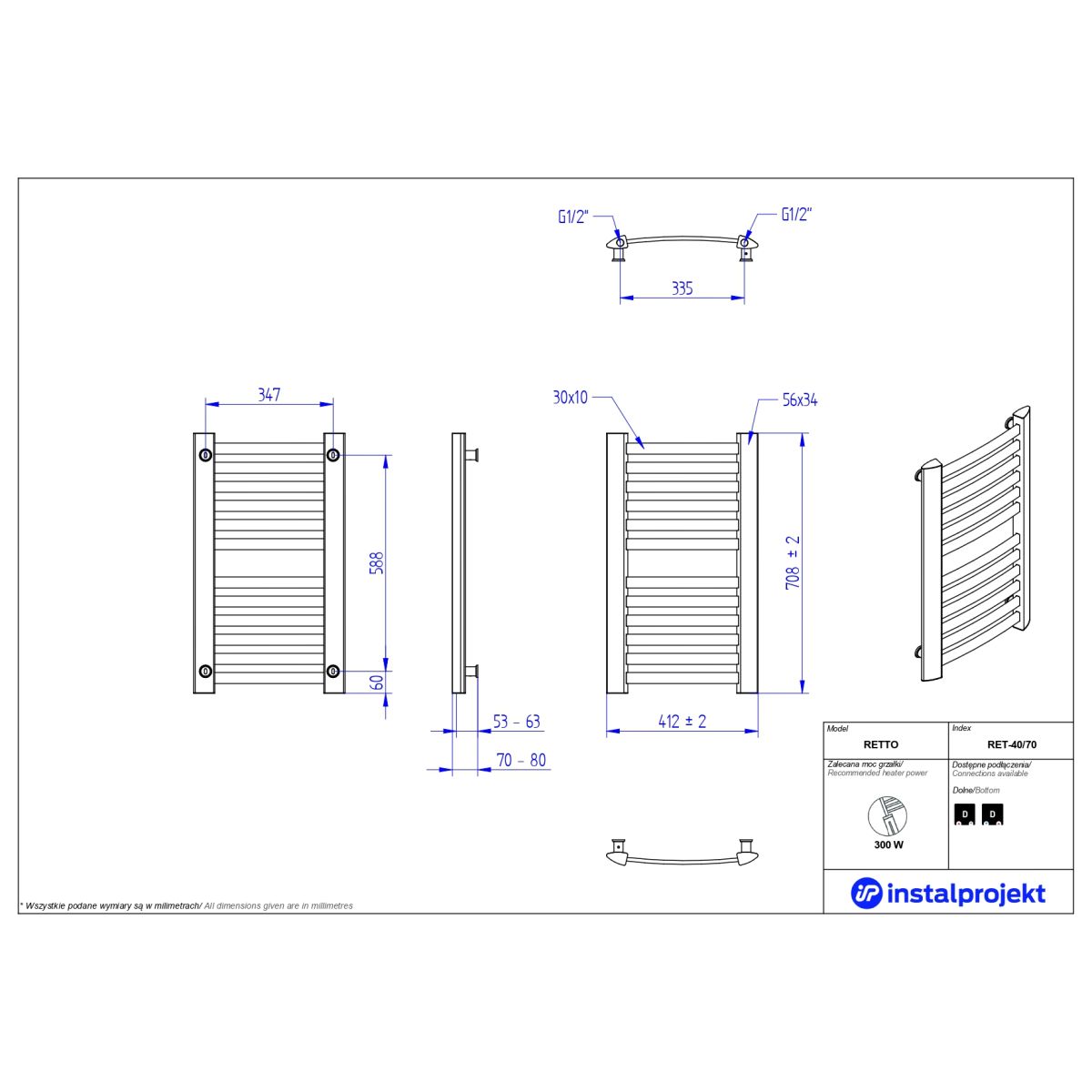 Der moderne Badheizkörper Instal Projekt Retto in Mattschwarz (C31) ist die perfekte Wahl für stilvolle Innenräume mit minimalistischem oder industriellem Charakter. Die charakteristischen dreieckigen Kollektoren und horizontalen Profile verleihen ihm ein ausdrucksstarkes, geometrisches Aussehen. Das Modell ist für die Montage mit einem unteren, breiten Anschluss an den Kollektoren (Abstand 335 mm) vorgesehen, was auch die Montage eines elektrischen Heizelements ermöglicht.