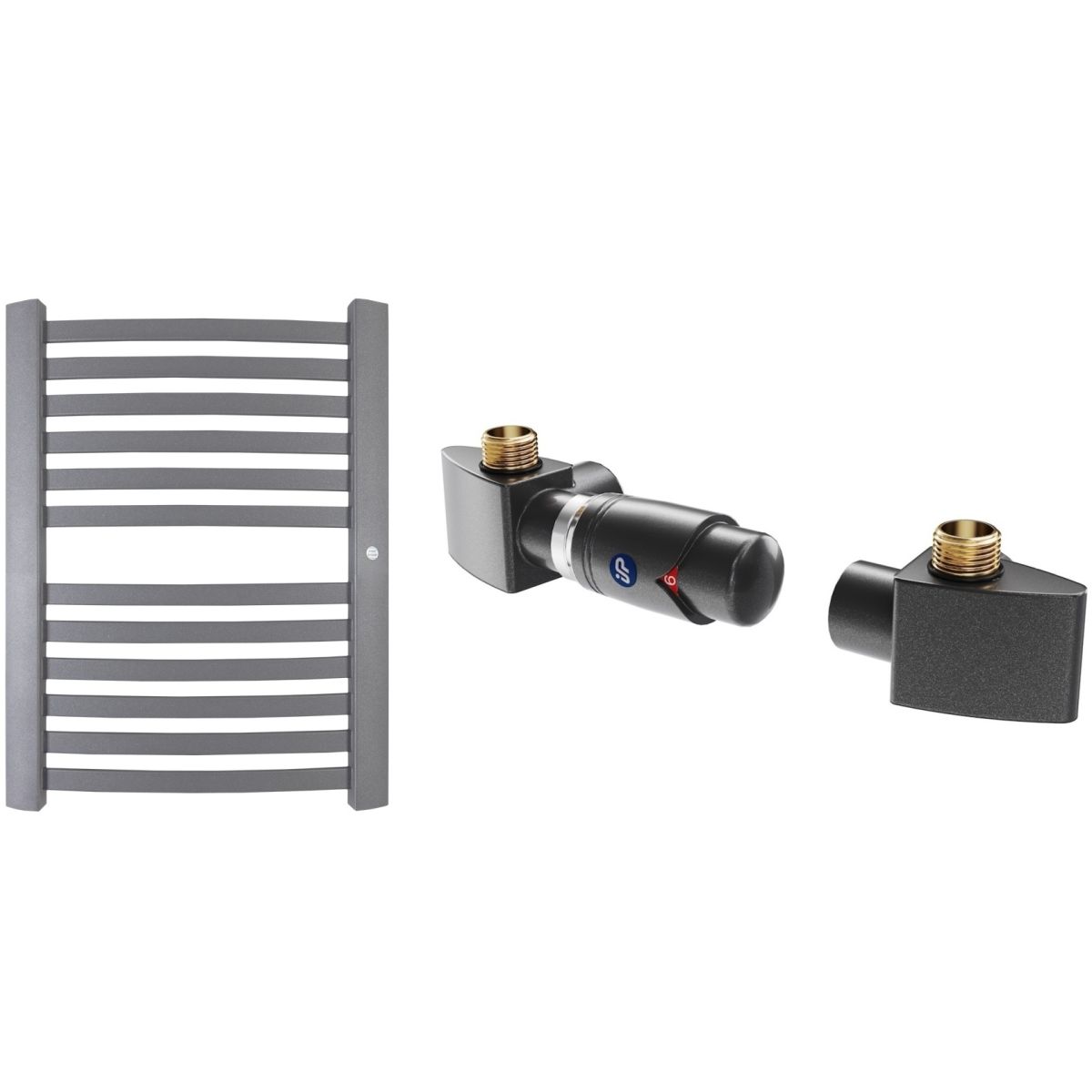 Spezielle Ventilgarnitur für RETTO-Heizkörper von Instal Projekt, geeignet für die Montage in Anlagen mit Unterversorgung. Für die Versorgung im rechten Verteiler ist das linke Ventil zu montieren, für die Versorgung im linken Verteiler das rechte Ventil. Der elektrische Heizkörper ist im Rücklaufverteiler der Anlage zu montieren. Das Set ermöglicht eine präzise Temperaturregelung und einen zuverlässigen Betrieb bei hohen Temperaturen und hohem Druck.