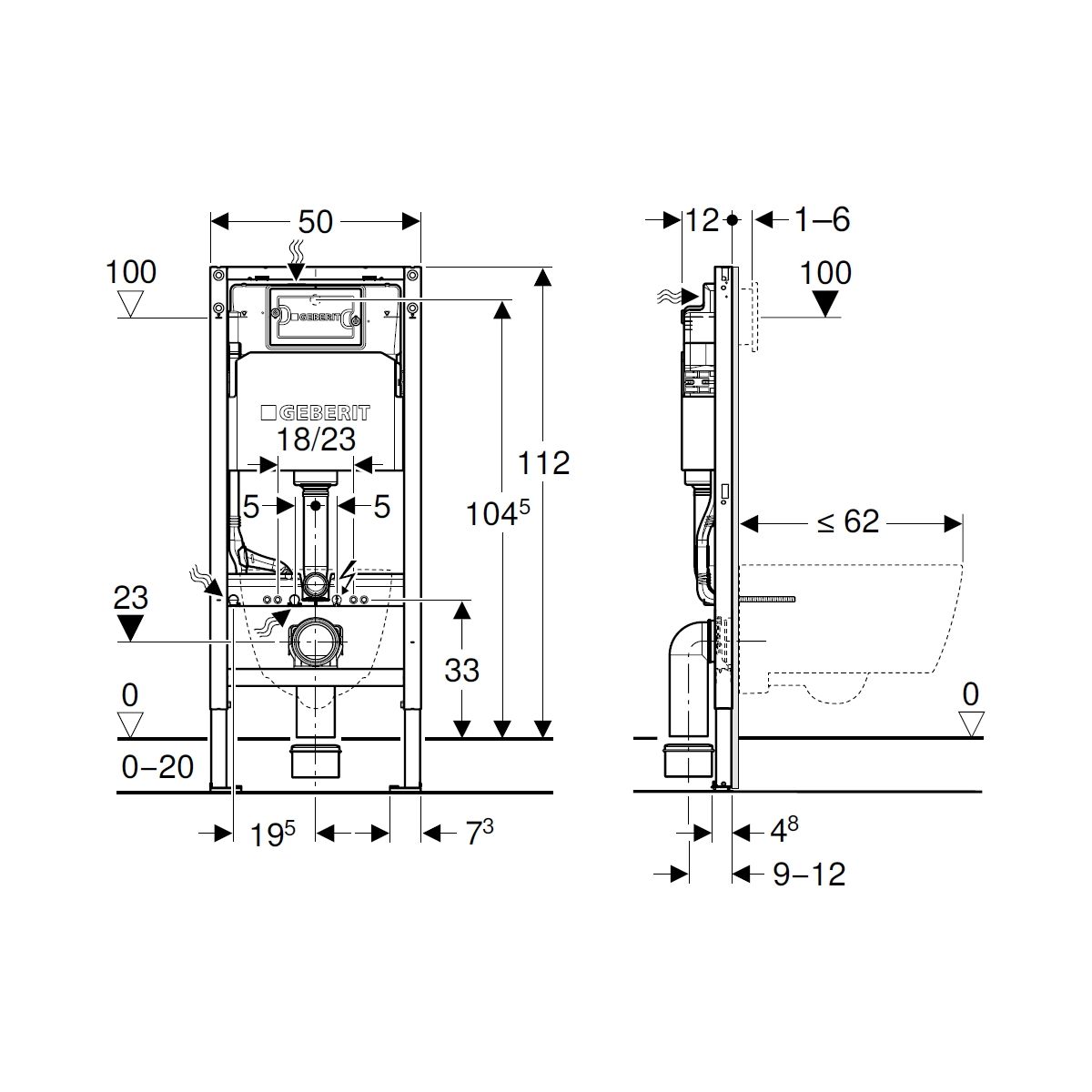 - Rahmen für Wand-WC-Becken mit Anschlussmaßen gemäß EN 33 und einem Auszug von bis zu 62 cm