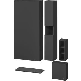 Der modulare Oberschrank zum Einbau in einen Rahmen besteht aus anthrazitfarben lackierter Spanplatte mit matter Oberfläche. Diese Schränke sehen nicht nur gut aus, sondern sind auch äußerst praktisch und eignen sich ideal für moderne Badezimmer. Die offenen Regale der Schränke ermöglichen einen schnellen und einfachen Zugriff auf aufbewahrte Gegenstände wie Handtücher, Kosmetika oder andere Badaccessoires. Die offenen Oberschränke wurden so konzipiert, dass sie sich perfekt mit den Unterputzschränken derselben Larga-Kollektion kombinieren lassen. So lässt sich ein einheitliches, elegantes Badezimmerdesign schaffen, bei dem jedes Element in Material und Ausführung perfekt aufeinander abgestimmt ist. Die Spanplatte, aus der der Schrank gefertigt ist, verfügt über das Zertifikat FSC MIX CREDIT SGSCH-COC-007574.