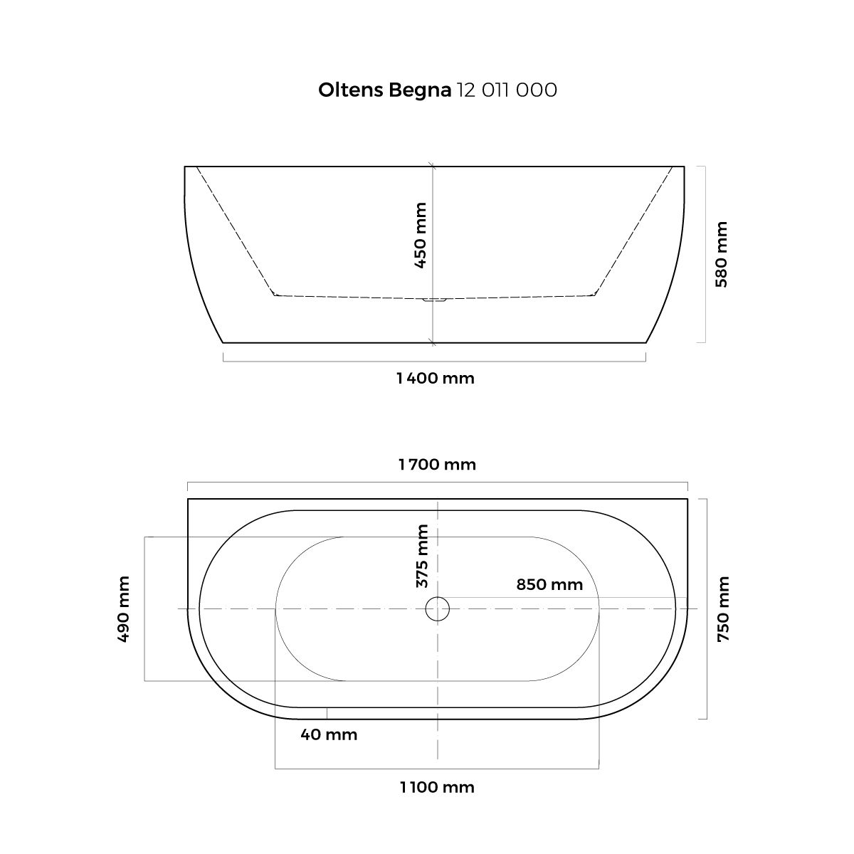 Oltens Begna Wandbadewanne 170x75 cm oval weiß 12011000