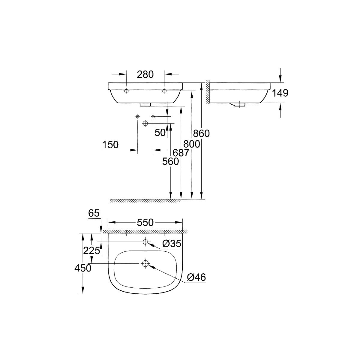 - Wandwaschbecken 55 cm Grohe Euro Ceramic