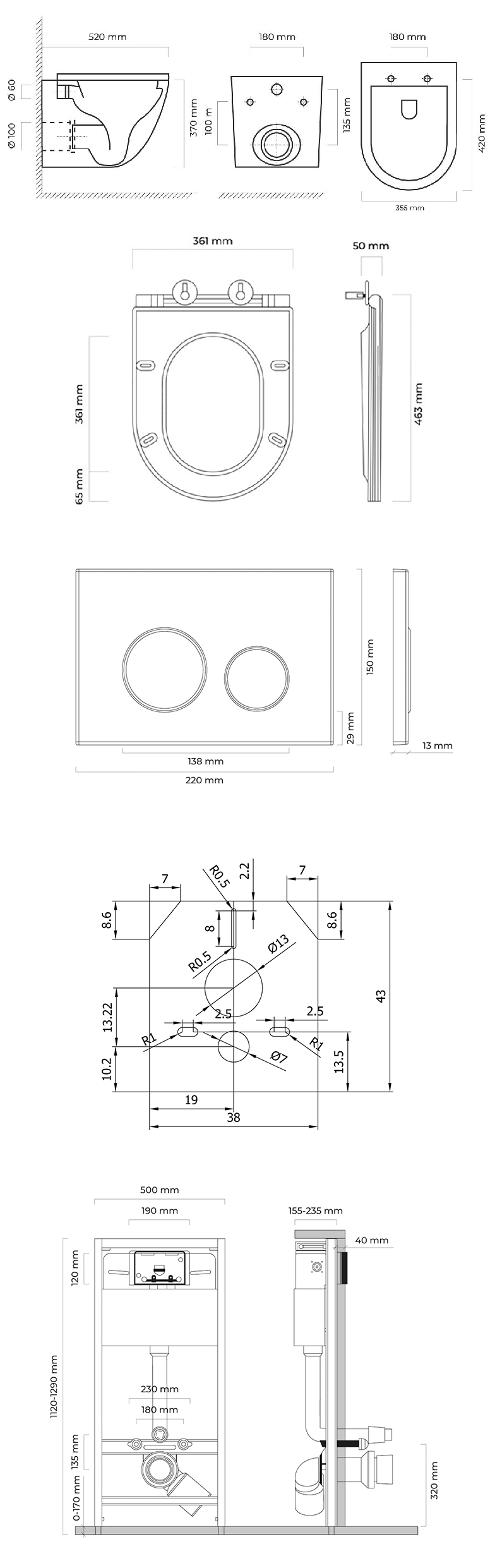 Der Schraubenabstand des Triberg‑Rahmens und der Oltens‑WC‑Schüsseln beträgt 18 cm gemäß der europäischen Norm.