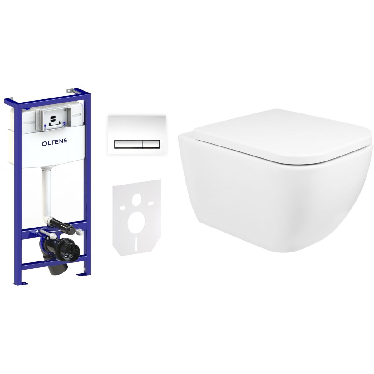 „Ich habe einen Unterputzrahmen gekauft. Oh nein, ich habe den Spülknopf und die Dichtung vergessen.“ Kennen Sie dieses Dilemma? Die Renovierung ist in vollem Gange, und statt den Fortschritt der Arbeiten zu überprüfen, fahren Sie von Geschäft zu Geschäft und kaufen ständig Materialien, die Sie vergessen haben? Warum sich die Mühe machen und Zeit für Dinge verschwenden, die man auf einen Schlag erledigen kann? Entscheiden Sie sich für das komplette 5-in-1-Set Oltens Triberg Torne für die Montage einer Wandtoilette, das Folgendes umfasst: