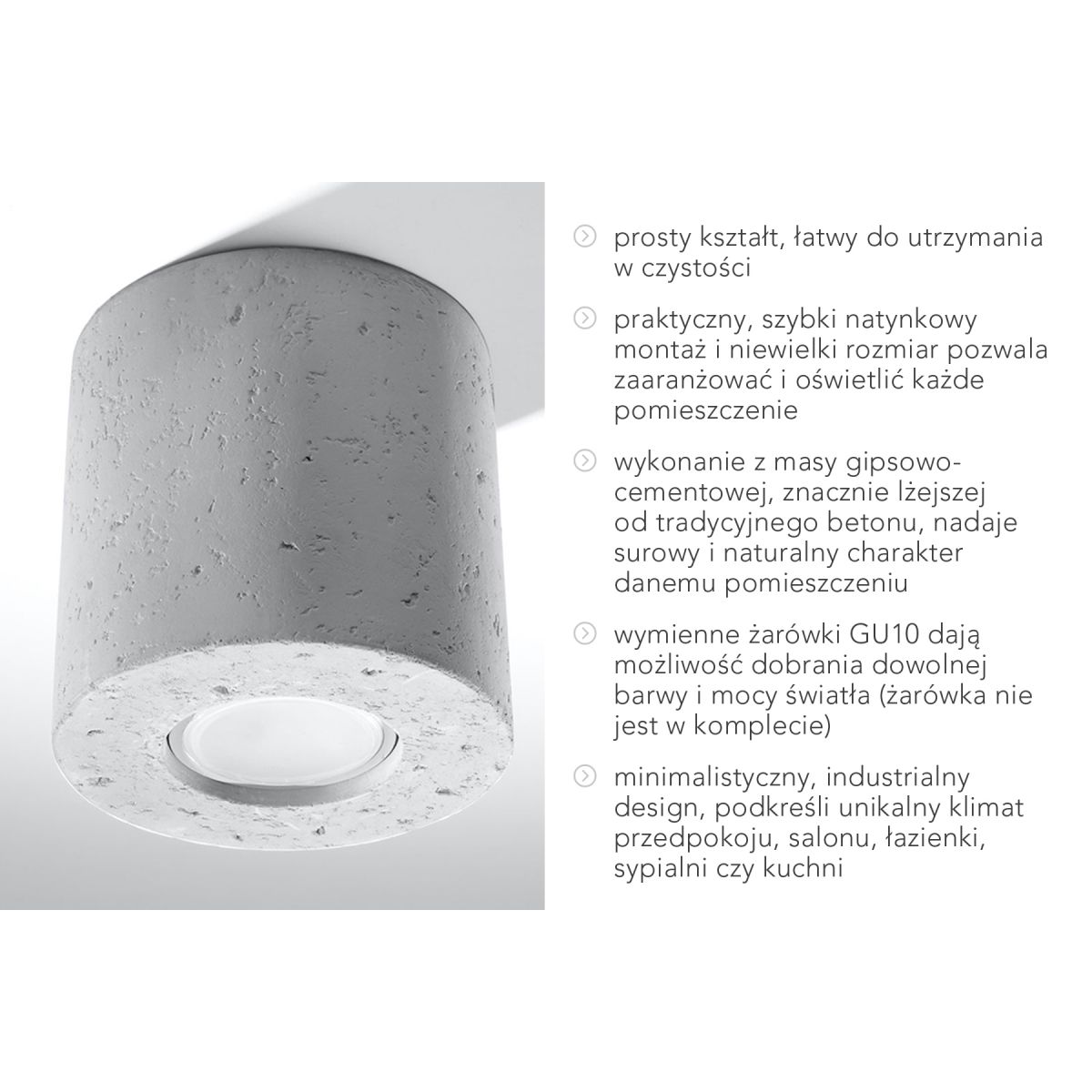 Diese ungewöhnliche Lampe in Form eines geometrischen Körpers wird allen Liebhabern modernen Designs gefallen. Sie lässt sich problemlos in die originellsten Innenraumgestaltungen integrieren, in denen Kombinationen verschiedener Materialien dominieren. Die vorgestellte Deckenleuchte hat einen Betonsockel, der ihr einen rohen Charakter verleiht. Gleichzeitig sorgt die Leuchte für eine effektive Ausleuchtung des Raumes und ist daher unverzichtbar, wenn es darum geht, ein gemütliches Interieur zu schaffen, das von skandinavischen Trends oder industriellem Design inspiriert ist.