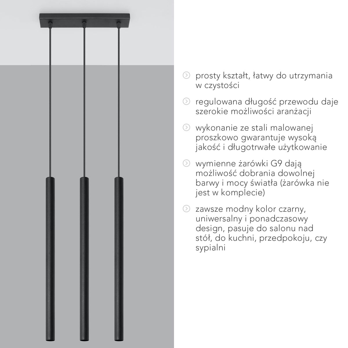 Die Hängelampe passt perfekt zu den aktuellen Trends in der Innenarchitektur. Sie verbindet Klassik mit Moderne, indem sie in ihrer Form an eine traditionelle Kerze erinnert, aber mit einer G9-Glühbirne leuchtet. Sie eignet sich ideal für den Einsatz in geringem Abstand über einem Tisch. Aufgrund ihrer geringen Größe stört sie weder beim Essen noch beim Unterhalten.