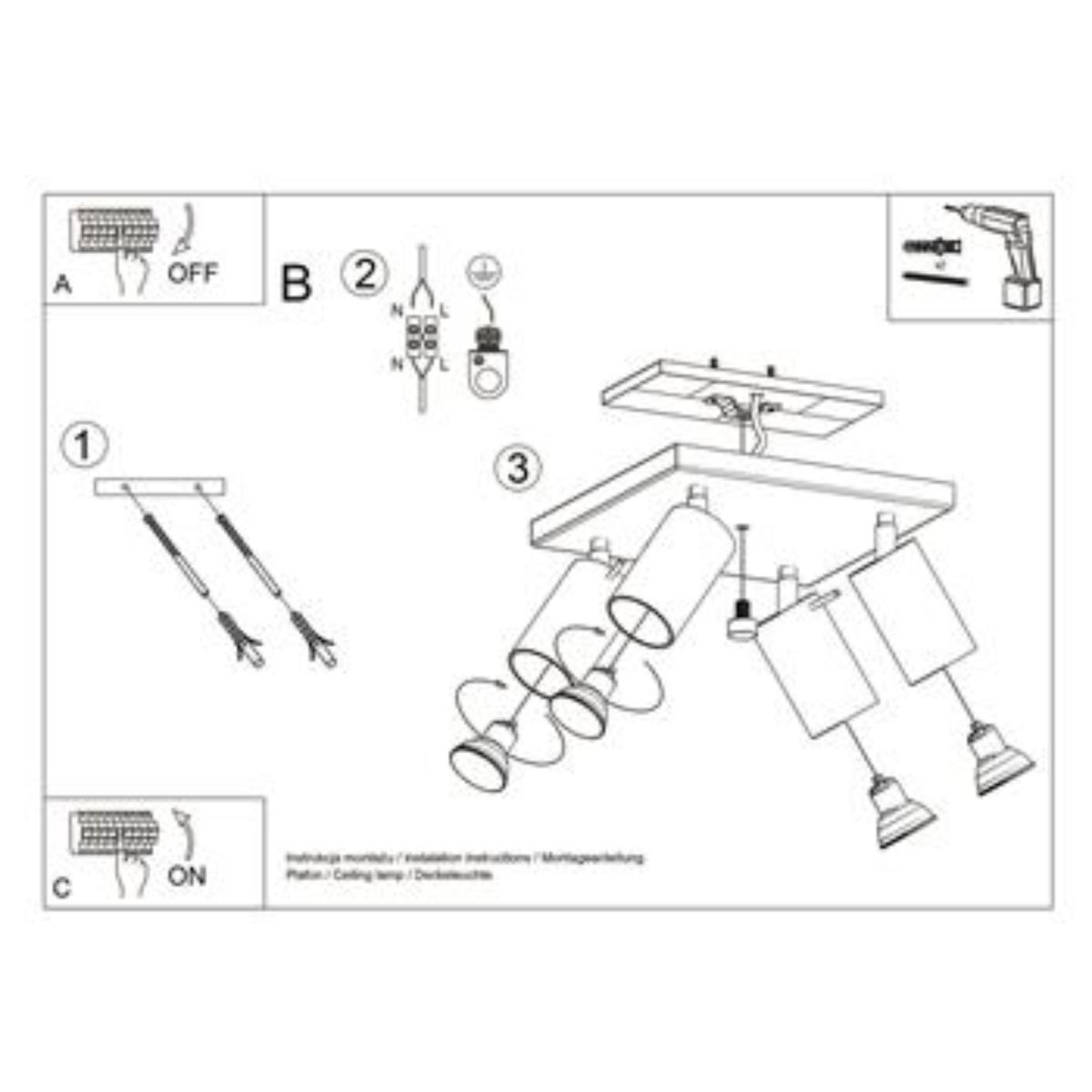 - Lichtquelle: GU10, 4x40W, 4x12W LED, 50-60Hz, ~220-230V, IP20, Schutzklasse I