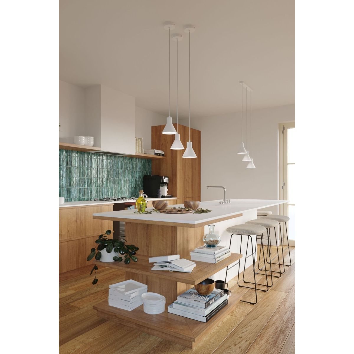 TALEJA ist eine Serie klassischer Hängelampen mit 1 oder 3 Lampenschirmen. Sie sind leicht gespreizt und sorgen für viel Licht, das den Raum gleichmäßig ausleuchtet. Das universelle Design ermöglicht den erfolgreichen Einsatz der Leuchte in jedem Interieur. Dank ihrer schlichten Form lässt sie Raum für andere Einrichtungselemente, obwohl sie in der Version mit 3 Lampenschirmen in unterschiedlichen Höhen neugierige Blicke auf sich ziehen kann. Sie ist in zwei klassischen Farben erhältlich: undurchdringlichem Schwarz und makellosem Weiß.