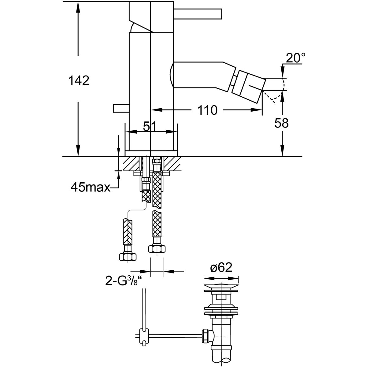 - mit flexiblen Schläuchen zum Anschluss an 3/8"-Armaturen