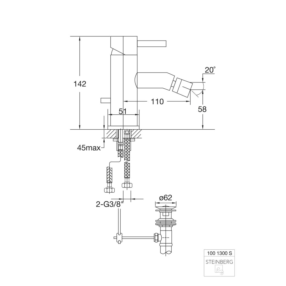 Steinberg 100 Bidet-Wasserhahn stehend schwarz 1001300S