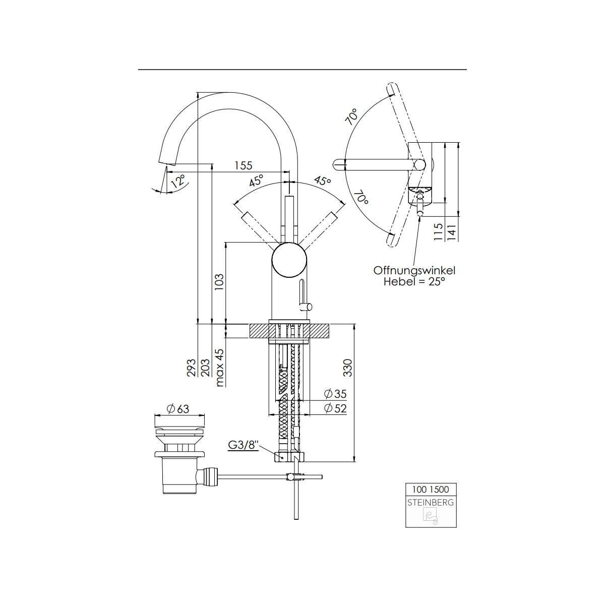 Steinberg 100 Waschtischarmatur Stehend chrom 1001500