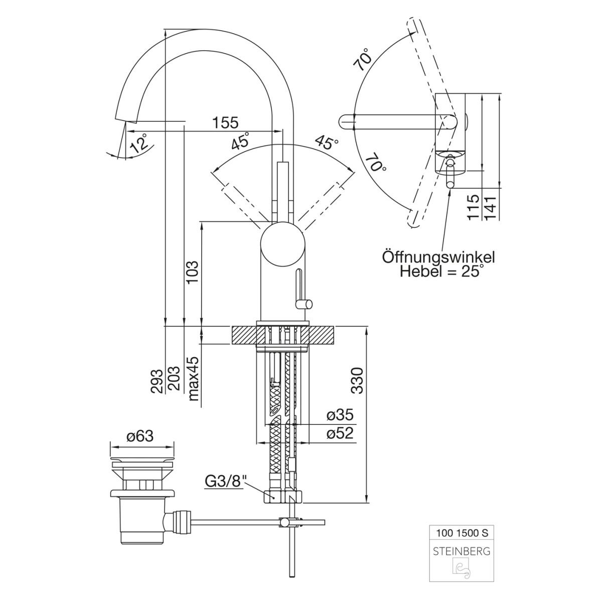 Steinberg 100 Waschtischarmatur Stehend schwarz 1001500S