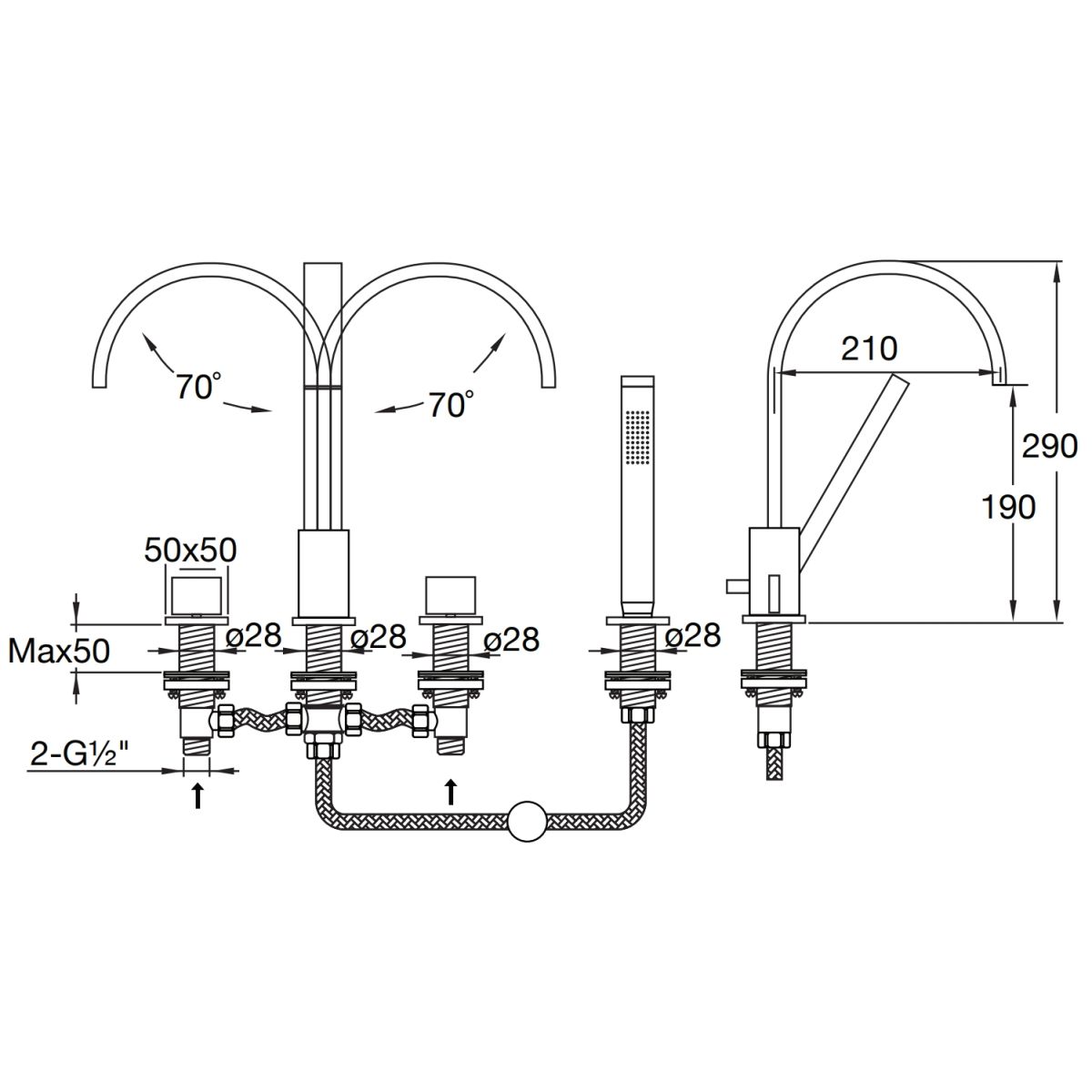 - Auslaufhöhe: 210 mm