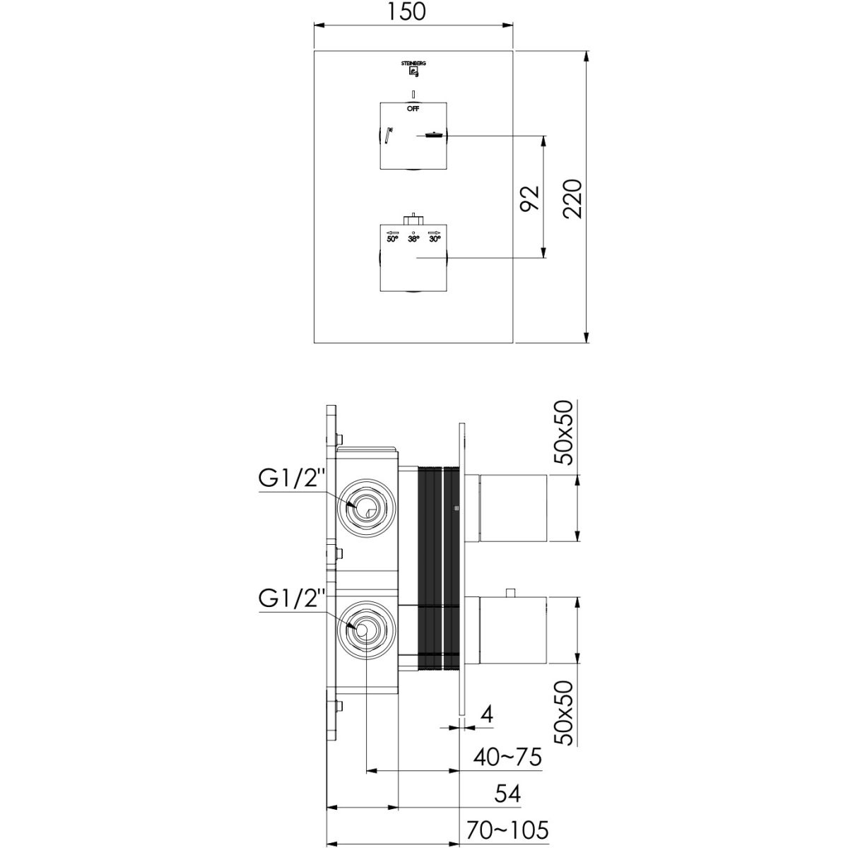 Steinberg 160 Badewannen- und Duscharmatur Unterputz mit Thermostat || 16041333RG