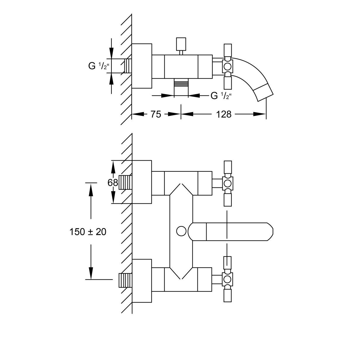 Steinberg 250 Badewannen- und Duscharmatur Wandmontage chrom 2501100