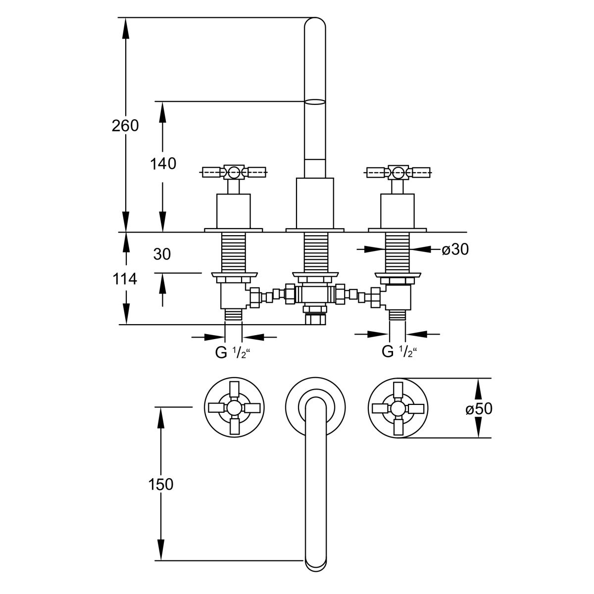 - Höhe der Armatur: 271 mm