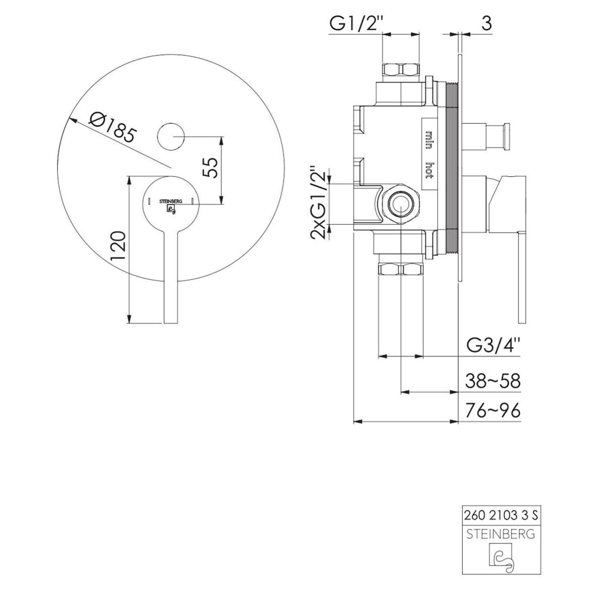 Steinberg 260 Badewannen- und Duscharmatur Unterputz schwarz 26021033S