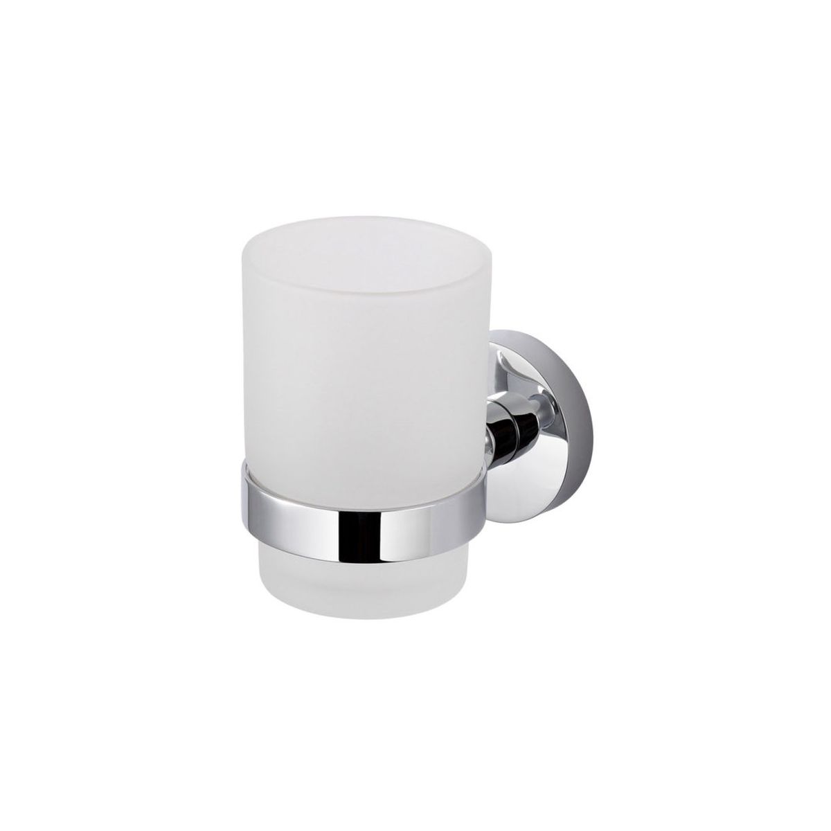 - mattierter Glasbecher, der mit einer Dichtung aus elastischem Kunststoff fest im Halter sitzt