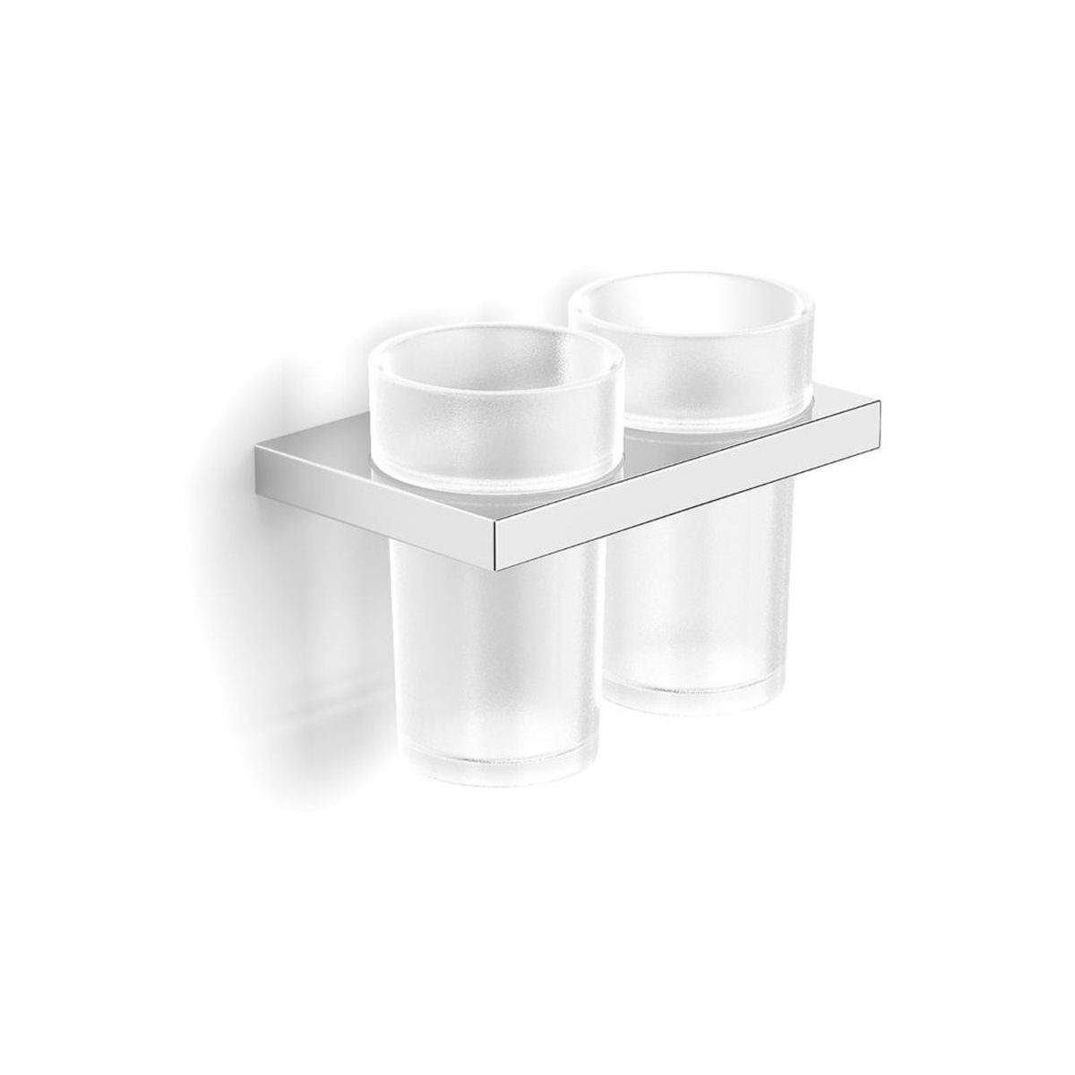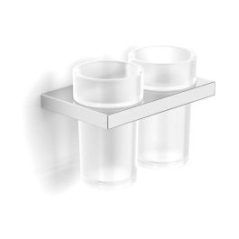 - Becher aus mattem Glas, mit einer Kunststoffdichtung im Halter befestigt