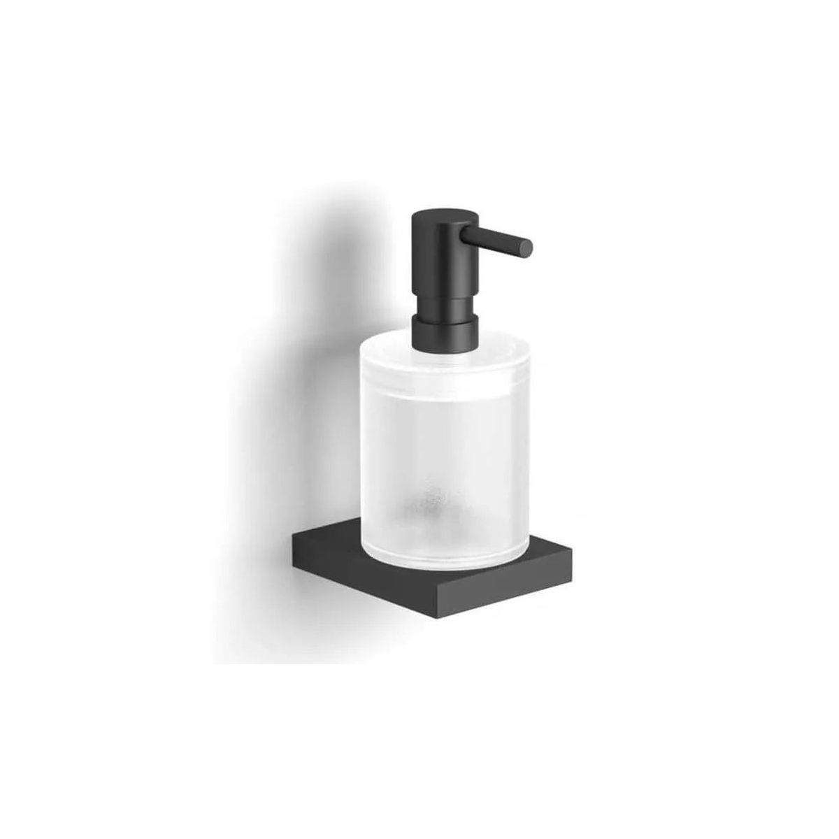 - Behälter für Flüssigseife aus mattem Glas, mit einer Kunststoffdichtung im Halter befestigt