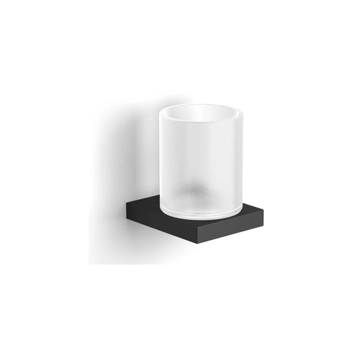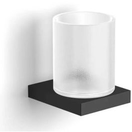 - Becher aus mattem Glas, mit einer Kunststoffdichtung im Halter befestigt