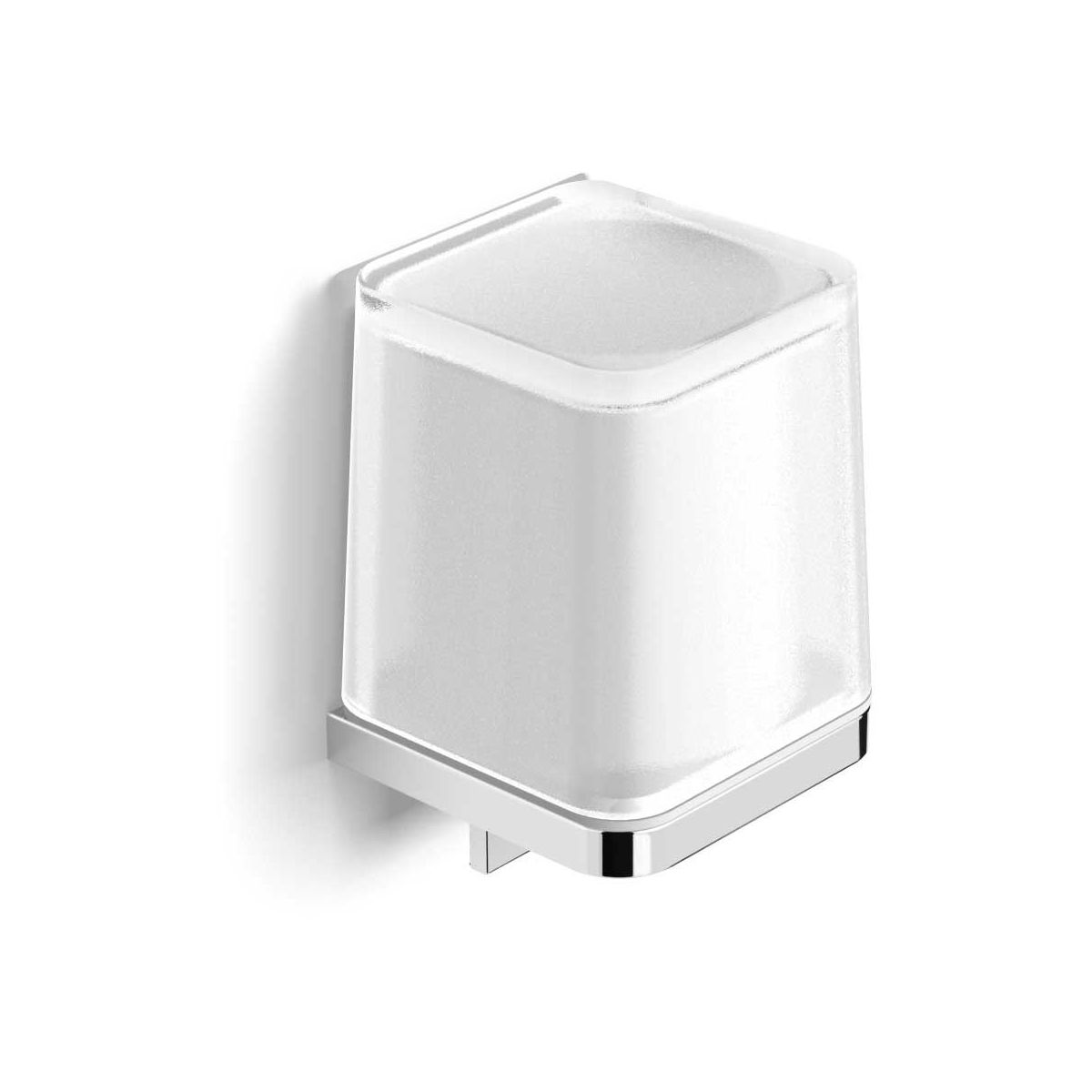 - Behälter für Flüssigseife aus mattem Glas, der mit einer Dichtung aus elastischem Kunststoff stabil im Halter befestigt ist