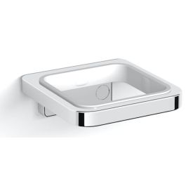 - im Halter eine Dichtung aus elastischem Kunststoff zur Befestigung eines separat bestellten Bechers oder Seifenspenders