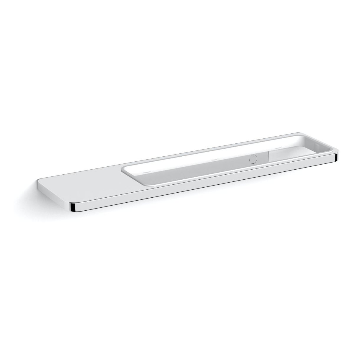 - im Halter eine Dichtung aus elastischem Kunststoff zur Befestigung der separat bestellten Glaselemente Becher, Seifenschale, Seifenspender