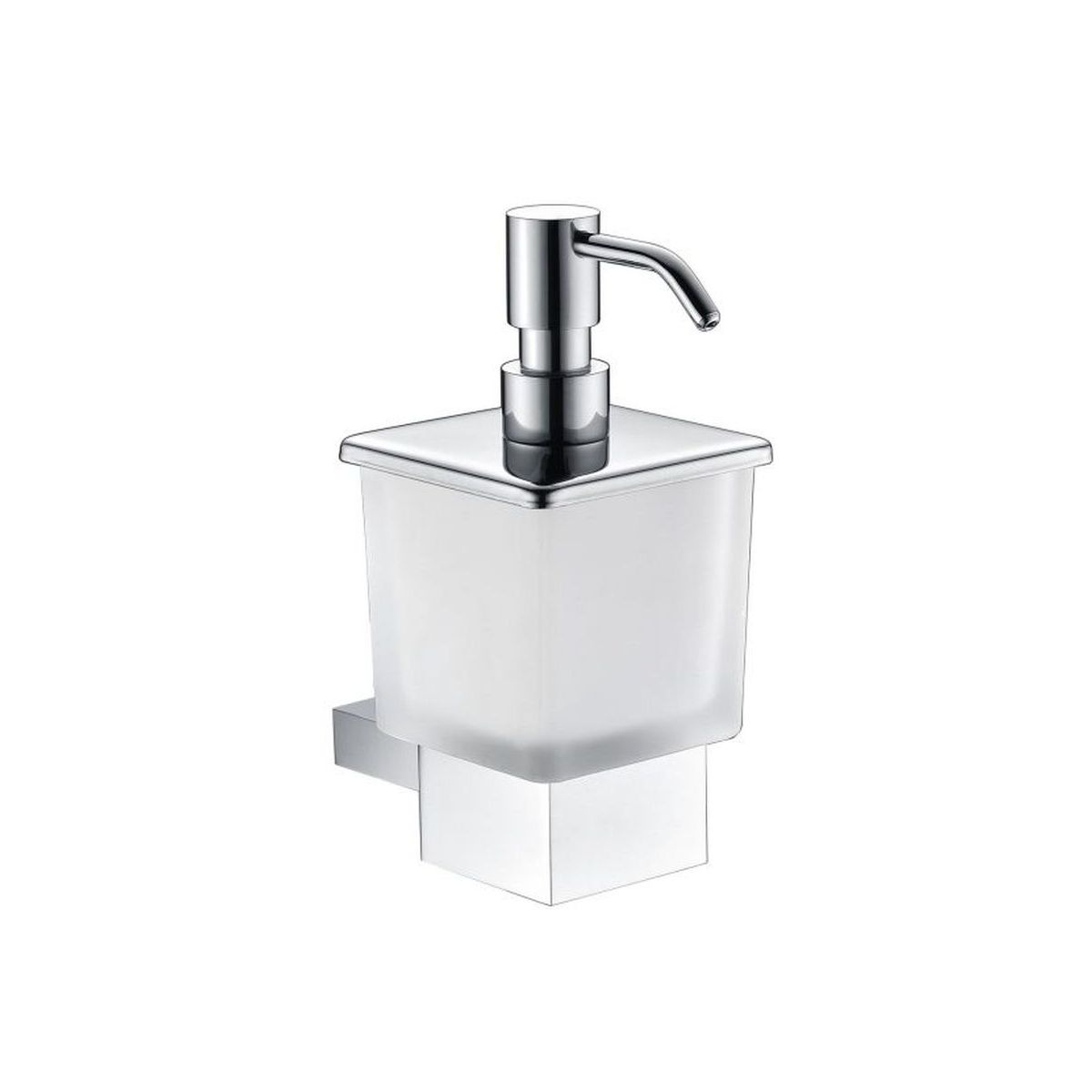 - Behälter für Flüssigseife aus mattem Glas, stabil im Halter befestigt mit einer Dichtung aus elastischem Kunststoff